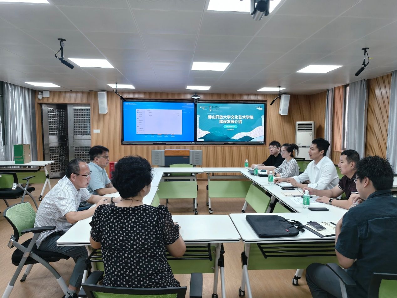 佛山开放大学文化艺术学院负责人介绍了近年来该校围绕工艺美术品设计、室内设计等专业,面向乡村工匠开展学历教育、非遗传承等工作的具体做法和取得的成效。之后,苗磊书记着重谈论了该校今后在乡村振兴工作上的一些设想,并希望学院给予具体指导和帮助。